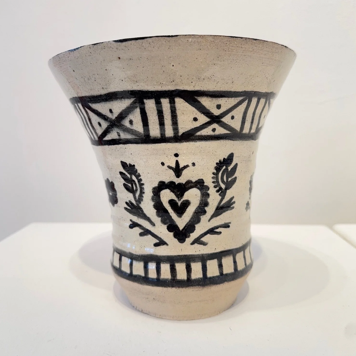 Throughout my residency I threw several works to explore in a more commercial sense my method of carving and painting patterns inspired by Czech and Syrian embroidery and Slovakian folk majolica. It was fun to explore the different applications of pattern work and to combine both historical patterns with modern stylization.